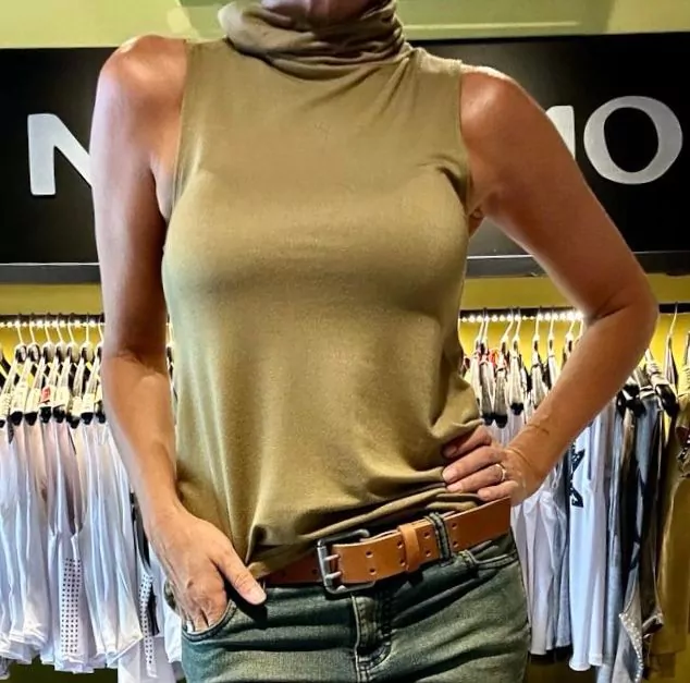 La remera Astro es una prenda de corte recto, y cuello alto sin mangas.